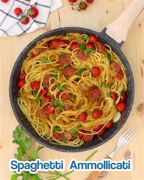 Gli spaghetti ammollicati con pomodorini sono un piatto tradizionale italiano, semplice e veloce da preparare, perfetto per pranzi e cene dell'ultimo minuto. Questa ricetta, ricca di sapore, è ideale anche quando la voglia di cucinare è poca. Gli ingredienti principali sono spaghetti, pomodorini e pangrattato.