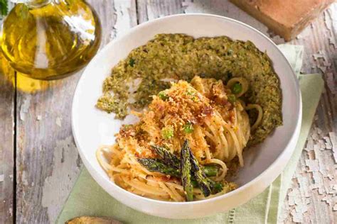 Un'altra deliziosa variante è rappresentata dagli spaghetti al pesto di asparagi e bottarga, un primo piatto primaverile perfetto. La ricetta si compone di un delizioso pesto di asparagi resa ancora più gustosa e decisa da una semplice spolverata di bottarga grattugiata. È una ricetta facile che si prepara in pochi e semplici passaggi, giusto il tempo di cuocere la pasta.