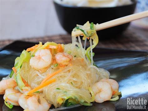 Ricetta degli Spaghetti di Soia con Gamberi e Verdure