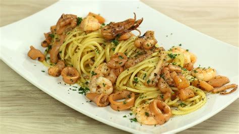 Spaghetti di mare alla piastra Ricetta (grilled seafood spaghetti Recipe)