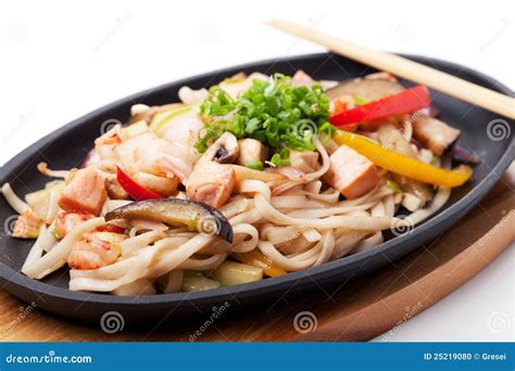 Preparazione noodles ai frutti di mare con hosomaki