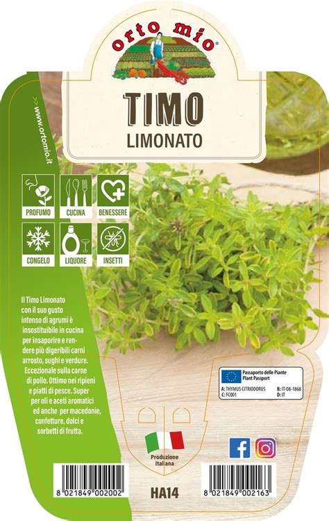 Il timo limonato (o timo limone) è una pianta aromatica appartenente alla famiglia del timo, apprezzata per il suo spiccato aroma di limone, percepibile sia all’olfatto che al gusto. Si tratta di una pianta arbustiva, con foglie più piccole rispetto al timo comune, caratterizzate da sfumature di giallo. Come la sua varietà più conosciuta, è una pianta perenne, molto resistente e di facile coltivazione.