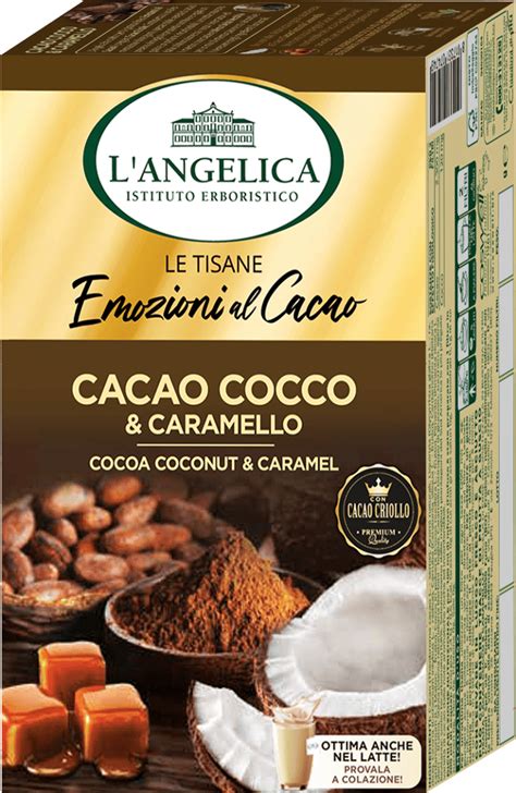 Un connubio di dolcezza e gusto caratterizza la Tisana Cacao Cocco & Caramello. L’Angelica ha scelto per la gustosa linea il pregiato Cacao Criollo. Sottoposta a una fermentazione di tre giorni, questa nobile varietà di cacao preserva al meglio le proprietà nutritive e regala un gusto e un profumo inconfondibili.