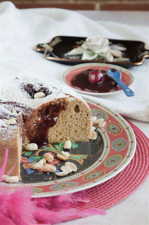 - Quando la torta sarà fredda, tagliarla a metà e farcirla al centro con uno strato di crema al burro d’arachidi e uno strato abbondante di confettura ai lamponi o alle fragole.