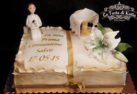 Per un successo assicurato si può scegliere di fare una torta di comunione a forma di libro. Ovviamente, quando si prepara si deve dar peso maggiormente alla decorazione. Per creare il libro si deve preparare un pan di Spagna di forma rettangolare. Quando è pronto si procederà a farcirlo con una crema. Per poi lavorare i lati e gli angoli, dando forma alle pagine e i contorni dello stesso.