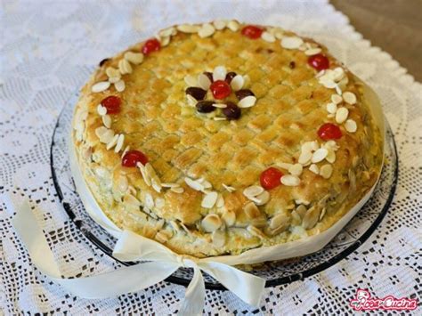 “La Delizia preparate con le Mandorle tritate, le albicocche marmellate, a canestro poi intrecciate ed il miele infine date con lucenti pennellate”.