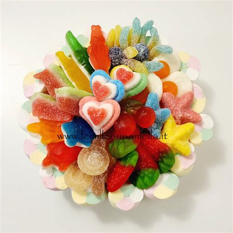 - Caramelle incartate di vari tipi (barrette di cioccolato, lecca-lecca, sacchettini di gommose, marshmallow, caramelle mou)