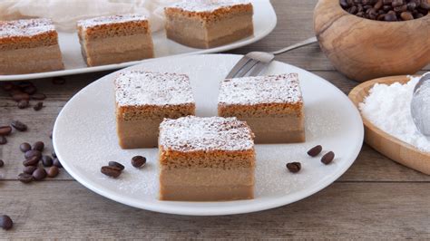 - Servizio: Trascorso il tempo di riposo, la torta la caffè cremosa sarà pronta per essere tolta dallo stampo. Trasferite la torta magica al caffè su un piatto da portata, spolverizzatela con lo zucchero a velo e gustatela!