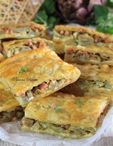 La pulizia dei carciofi è un processo facile, ma che richiede un po’di attenzione. Non c’è un quantitativo fisso di foglie da rimuovere, dovrete eliminarle fino a quando il cuore del carciofo, tastandolo, risulterà tenero. Certamente, questo piatto può essere realizzato con un impasto diverso dalla base di pasta sfoglia: potete optare, per esempio, per la pasta matta, ovvero un impasto facile e veloce, che non avrà bisogno di tempi di riposo. Vi basterà mescolare farina, acqua, olio extravergine e le spezie o le erbe aromatiche che più preferite. In pochi minuti avrete realizzato una degna sostituta della pasta sfoglia.