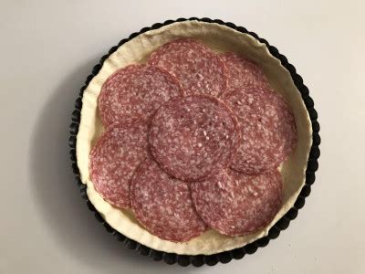 - Bucherellate il fondo e foderate in maniera omogenea la base con uno strato di fette di salame tagliate in maniera sottile.