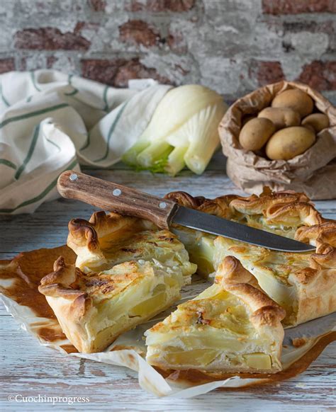 TORTA SALATA SFOGLIA INTEGRALE CON FINOCCHI E PATATE cottura in forno per una fragrante croccantezza