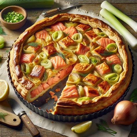 Ecco una ricetta base per preparare una deliziosa torta salata porri e salmone: