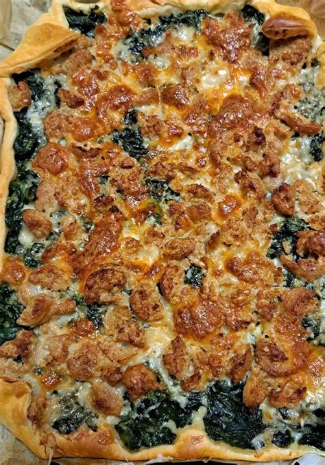Una base di pasta brisè fa da involucro a un fantastico e irresistibile ripieno a base di spinaci, salsiccia e grana: pochi e semplici ingredienti che si sposano alla perfezione dando vita a una torta salata squisita, sfiziosa e ricca di gusto!