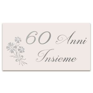 La pietra celebrativa del sessantesimo anniversario di matrimonio è il diamante, simbolo di solidità, durevolezza e inossidabilità. Non rinunciare a festeggiamenti in grande stile, con tanto di rinnovo delle promesse, bomboniere e regali.