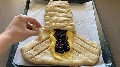 Ti basterà mescolare nella ciotola le uova, l'estratto di vaniglia, la scorza grattugiata di un limone biologico e l'acqua tiepida, in cui avrai precedentemente sciolto il lievito di birra, quindi incorporare la farina, un pizzico di sale e il burro morbido a tocchetti, fino a ottenere un impasto lucido ed elastico, che andrà poi lasciato lievitare per circa 2 ore, fino al raddoppio del volume iniziale. Trascorso il tempo necessario, si procede stendendo la pasta in forma rettangolare su una superficie lievemente infarinata e si praticano delle incisioni oblique sui lati lunghi; si farcisce il centro con la crema e la confettura, e si incrociano le strisce laterali. Dopo un ulteriore riposo di circa 1 ora, si spennella con l'uovo sbattuto, si cosparge con lo zucchero semolato e si inforna a 170 °C per 40 minuti.