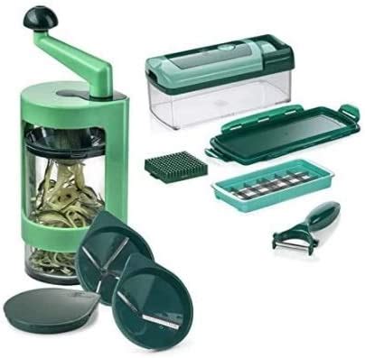 - Gefu Spirelli - Affettaverdure a spirale: Questo modello è piccolo e veloce da usare, con lame in acciaio inox molto efficaci. Tuttavia, produce uno scarto maggiore, affettando solo la parte più esterna delle verdure. È facile da lavare e disponibile online a un prezzo tra i 15 e i 20 euro.