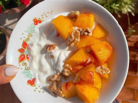 - Yogurt greco con frutta fresca e semi: il sapore leggermente acido dello yogurt greco si sposa perfettamente con la frutta di stagione, come mirtilli, pesche o banane e una manciata di semi di chia o lino.