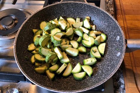 - Aggiungete le zucchine e fatele sfrigolare su fiamma vivace per 2-3 minuti e spegnete il fuoco.