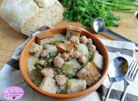 Oggi vi propongo una minestra tipica a base di verdura, pane, carne e formaggio. Secondo tradizione a Cosenza, viene servita il giorno di Santo Stefano o alla vigilia di Capodanno. Ovviamente dovrebbe essere una portata con la quale depurarsi ma la consistenza del piatto non lo prevede benché potrebbe essere un piatto molto ricco e completo.